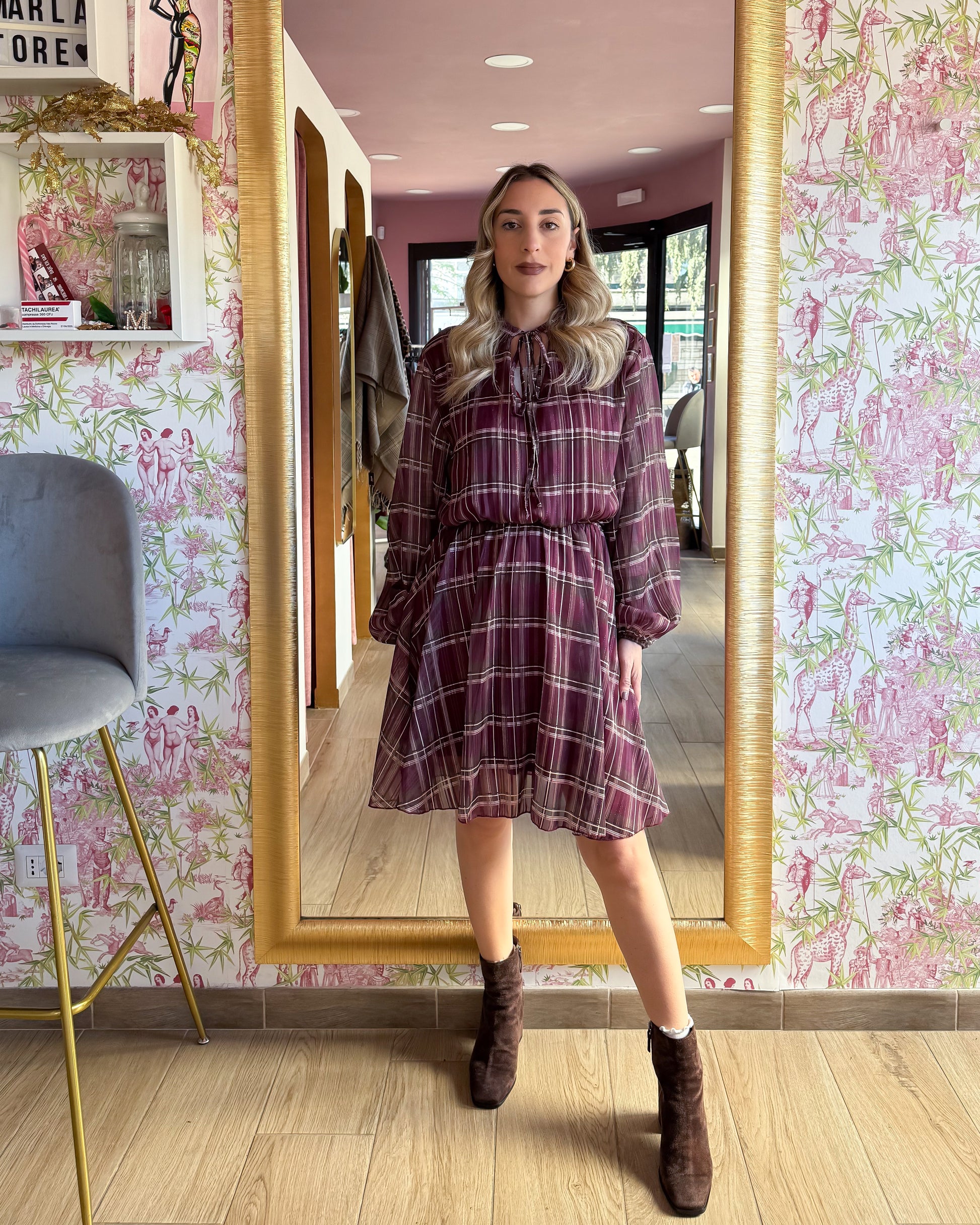 Abito in georgette con sottoveste, apertura a goccia con laccetti, elastico ampio in vita