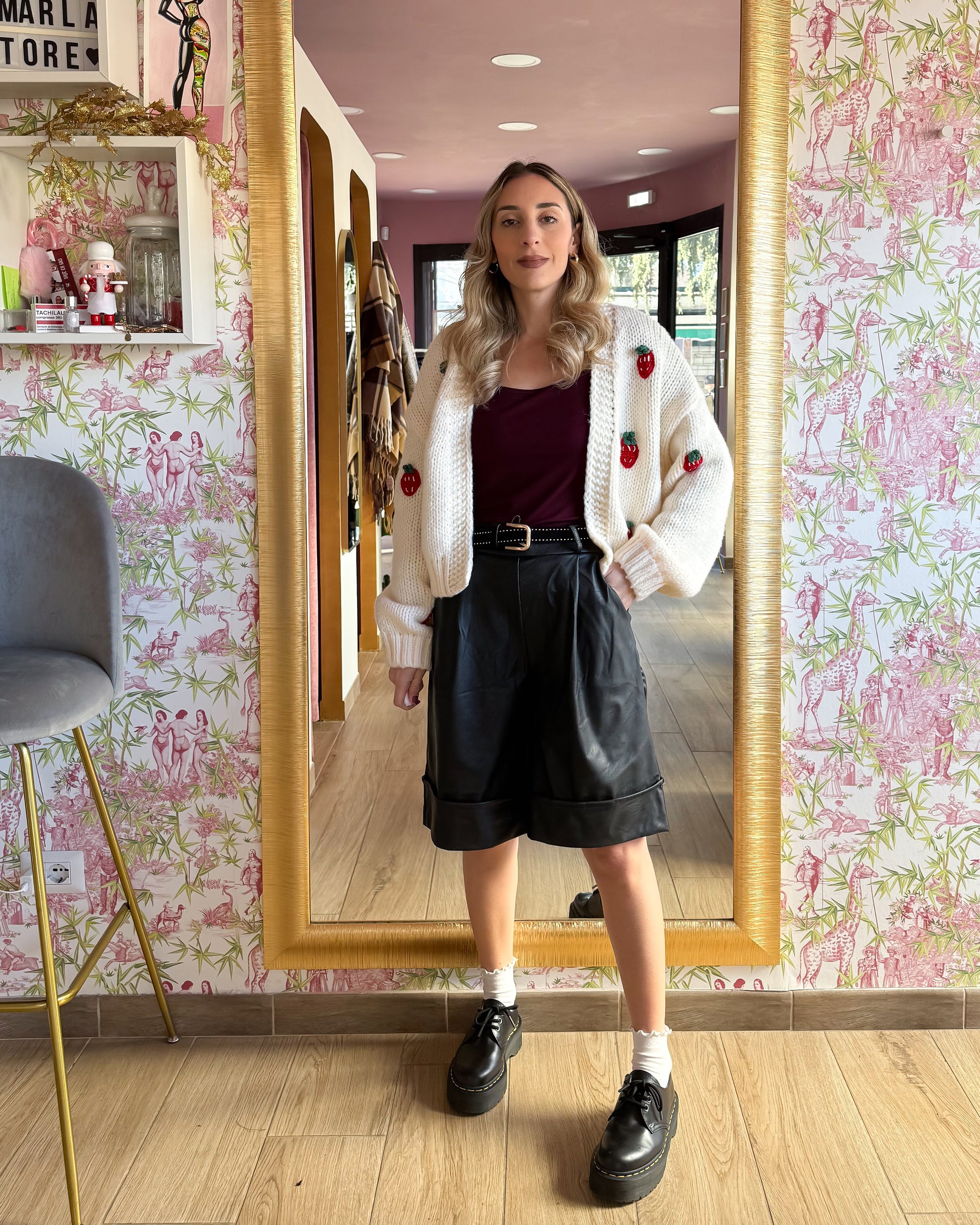 Bermuda in eco pelle con tasche e cintura, elastico dietro