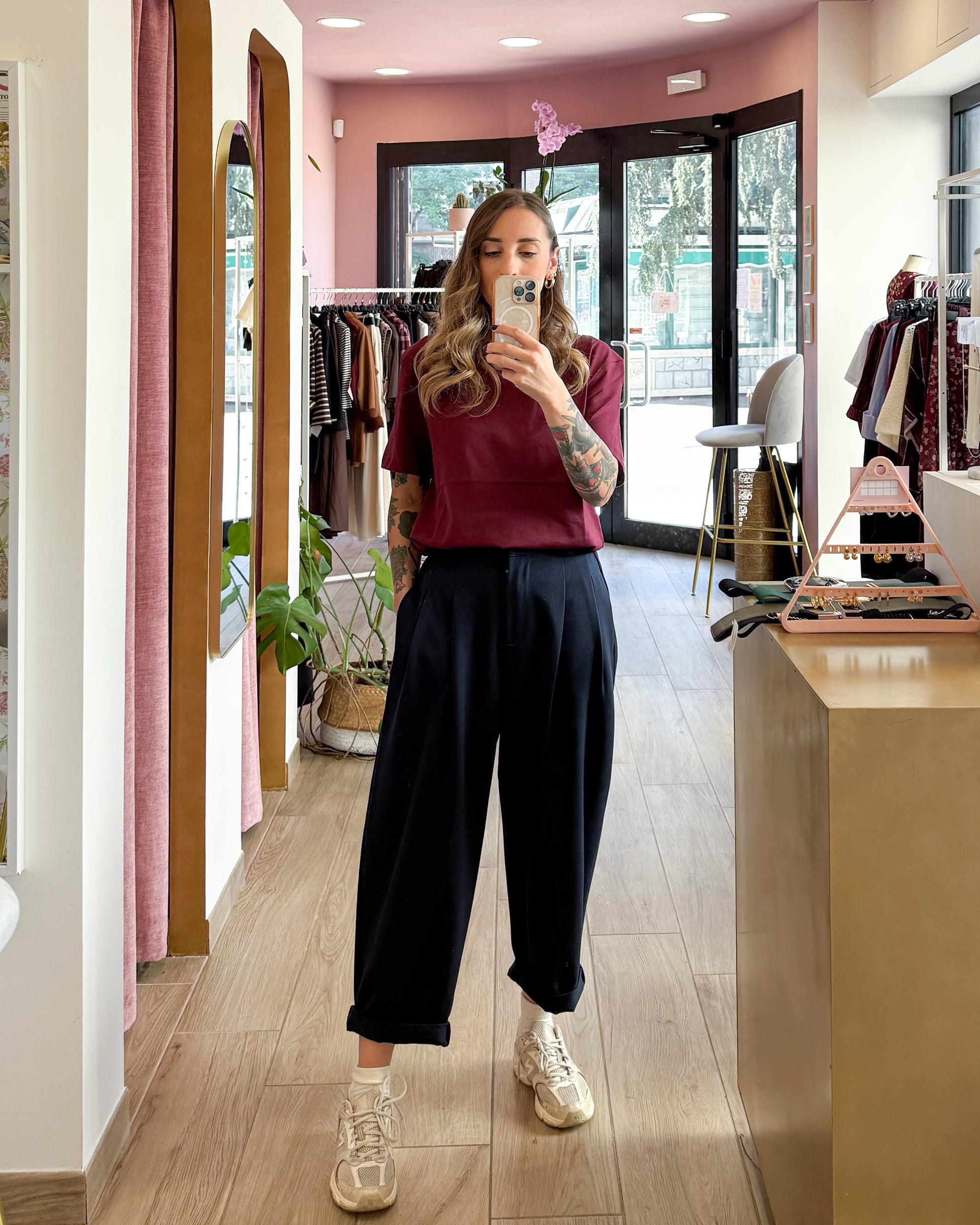 Pantaloni a palloncino misto viscosa, con tasche, bottone ed elastico posteriore