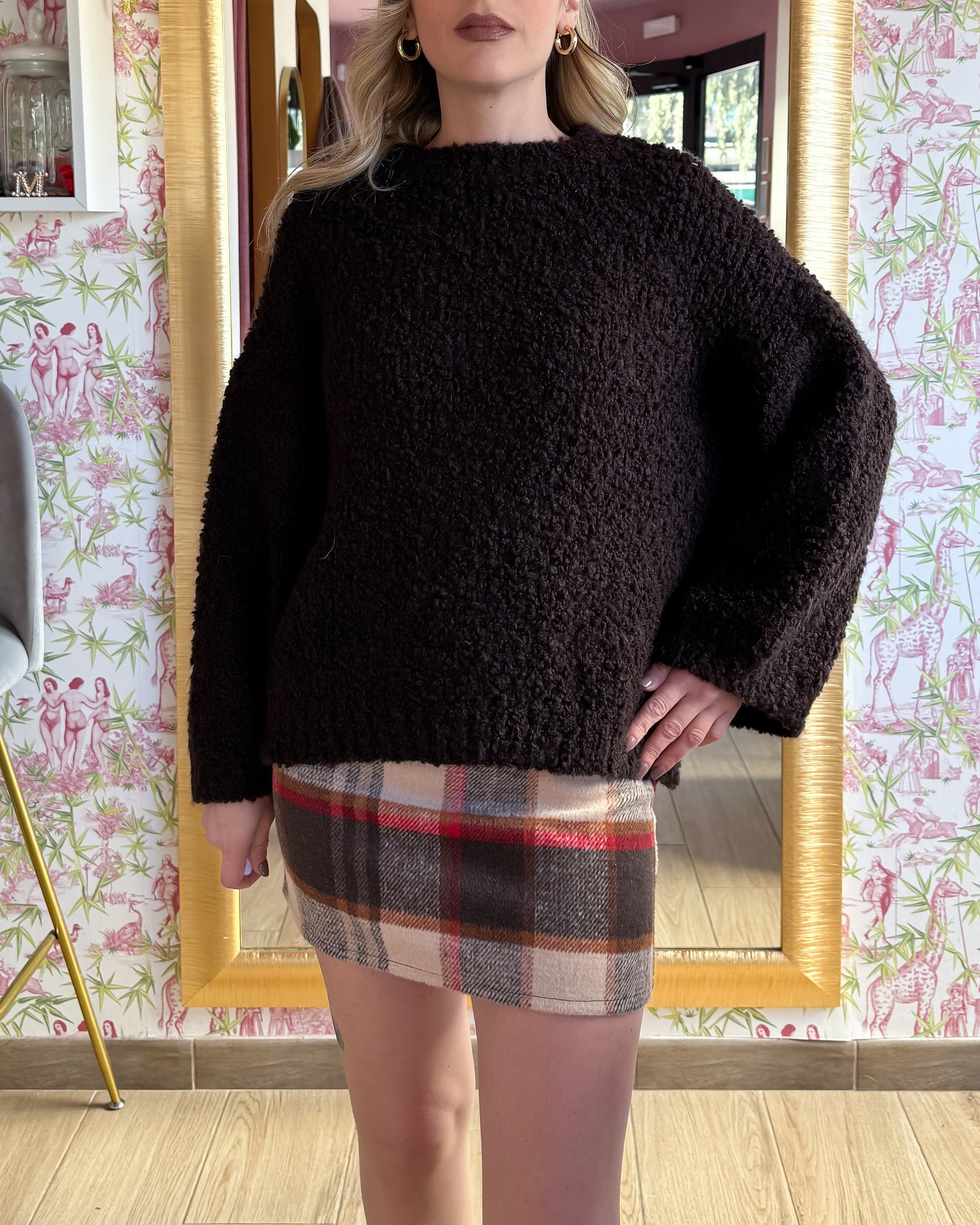 Maglione over tessuto boucle'