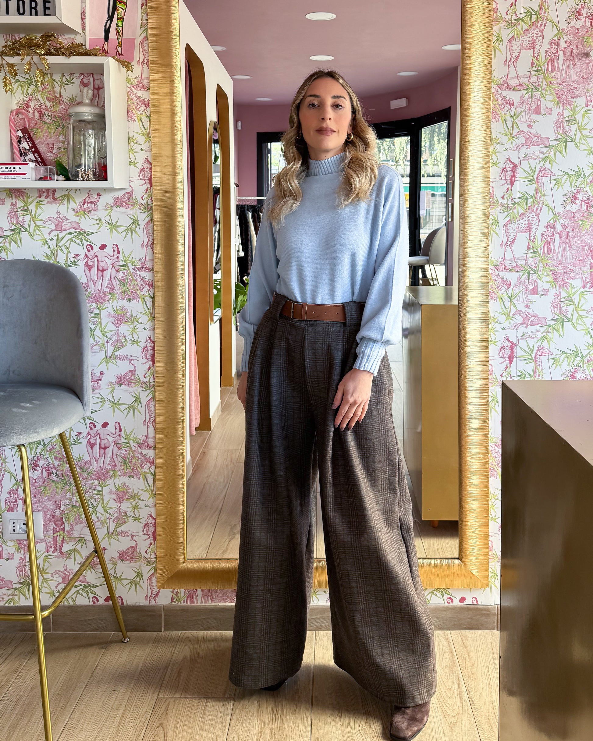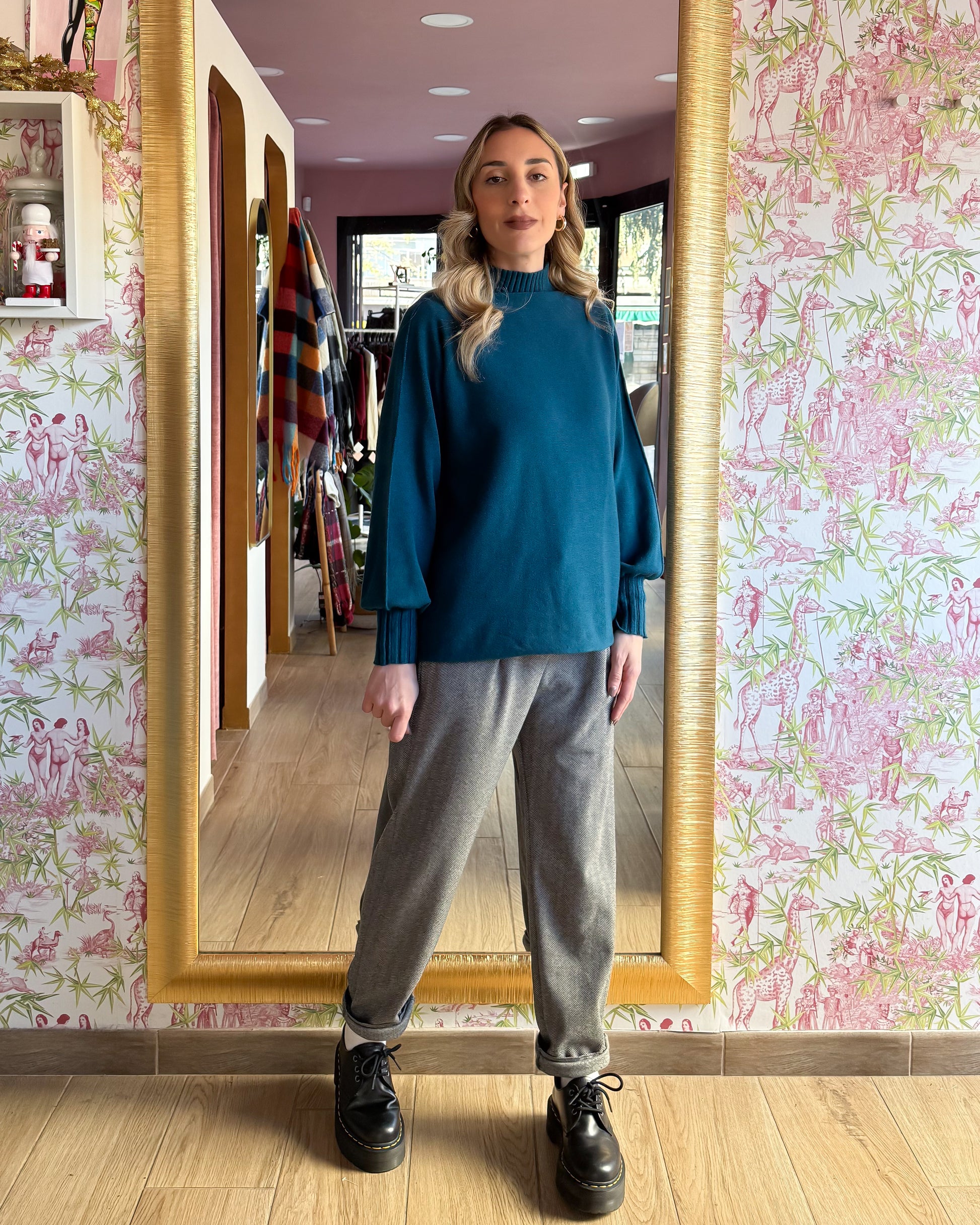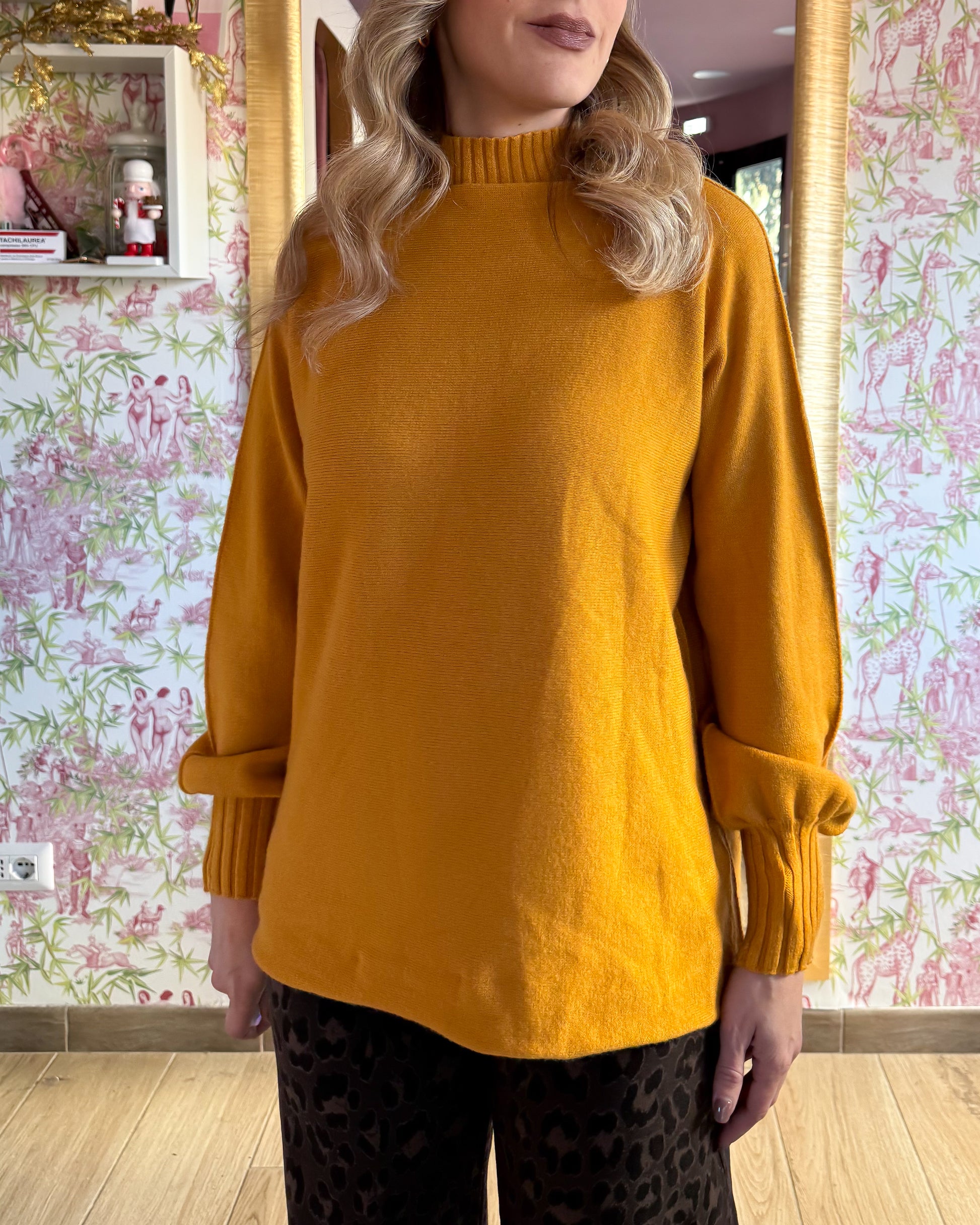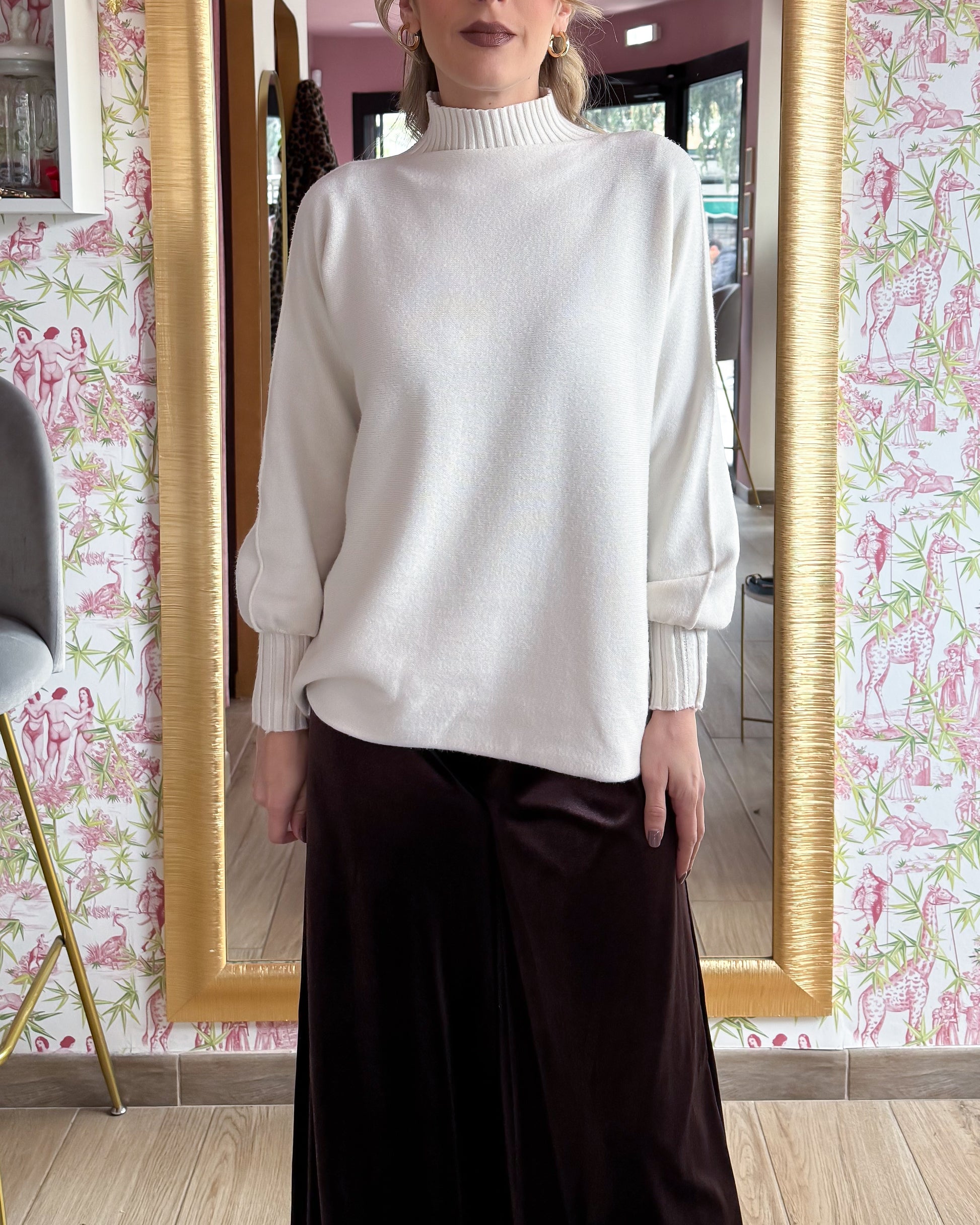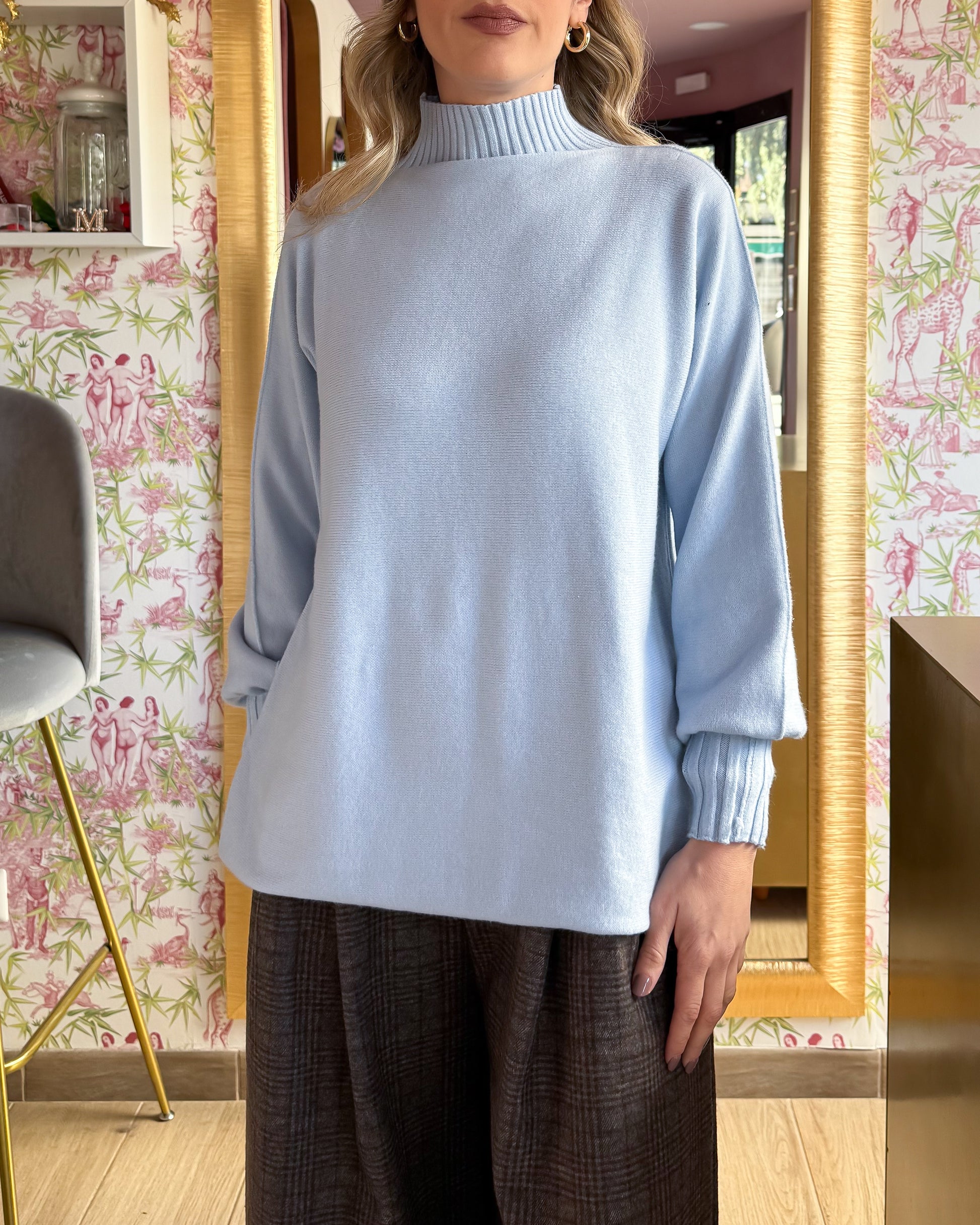 Maglia morbida collo alto, manica a palloncino, 50% viscosa