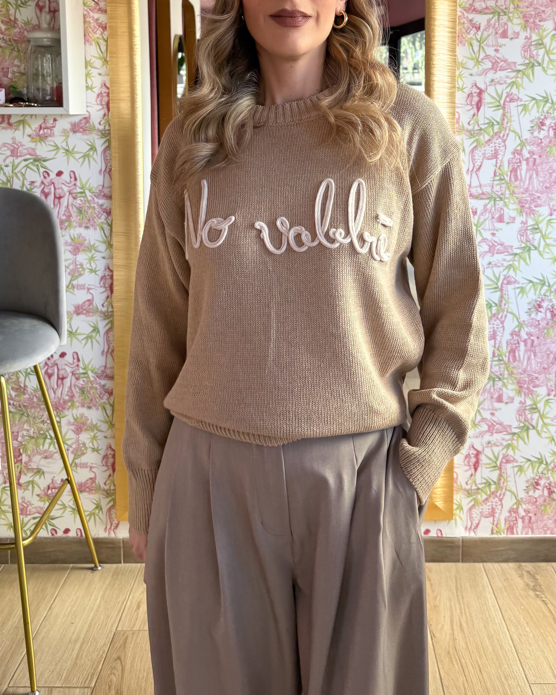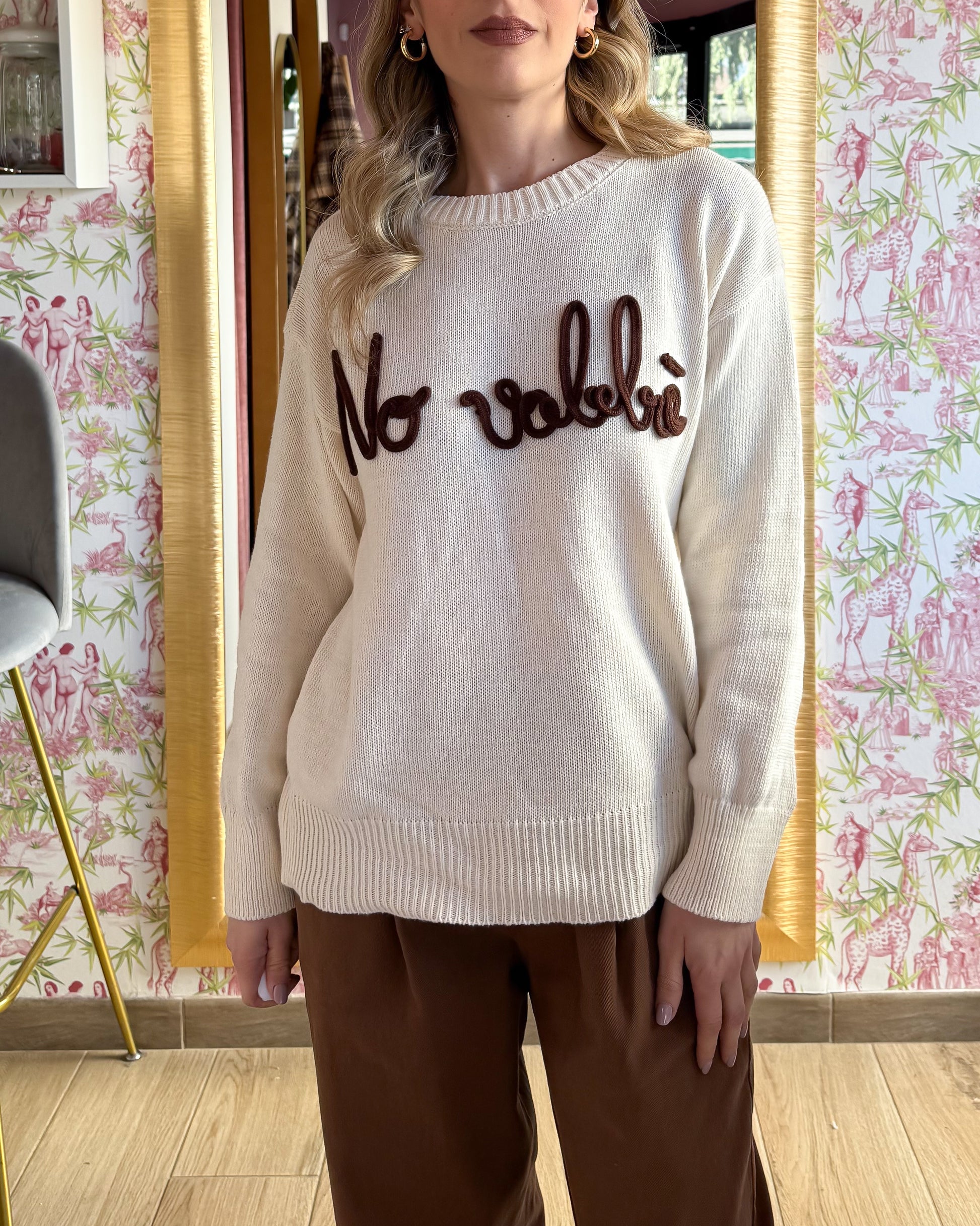 Maglia in filo con scritta cucita a rilievo modello lunghezza regolare, leggermente over 50 acrilico, 50 cotone