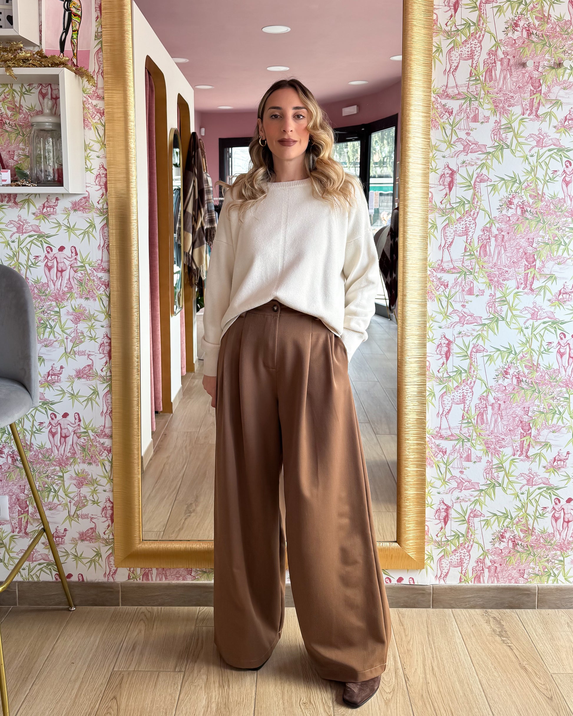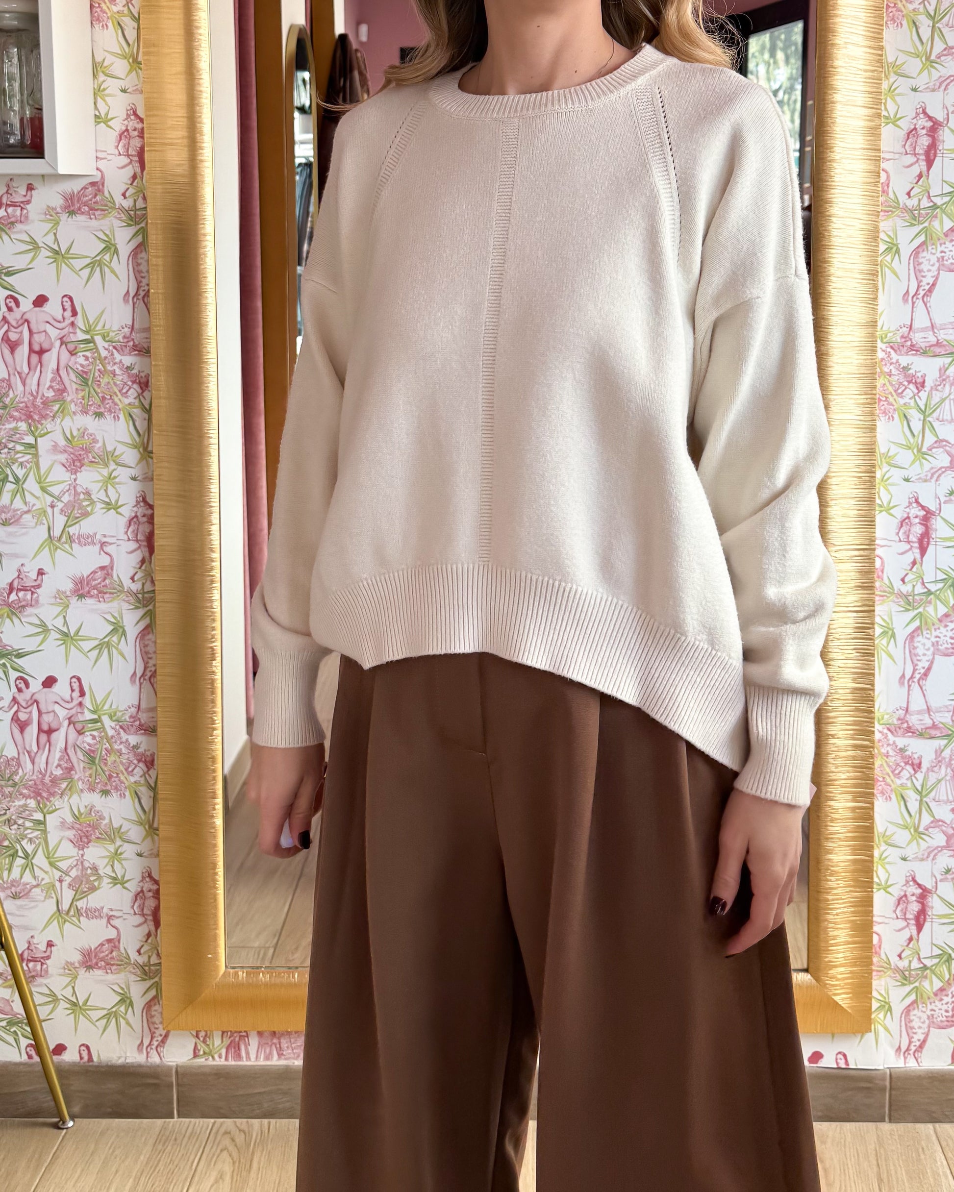 Maglia modello largo, corta e lavorata davanti, piu' lunga dietro